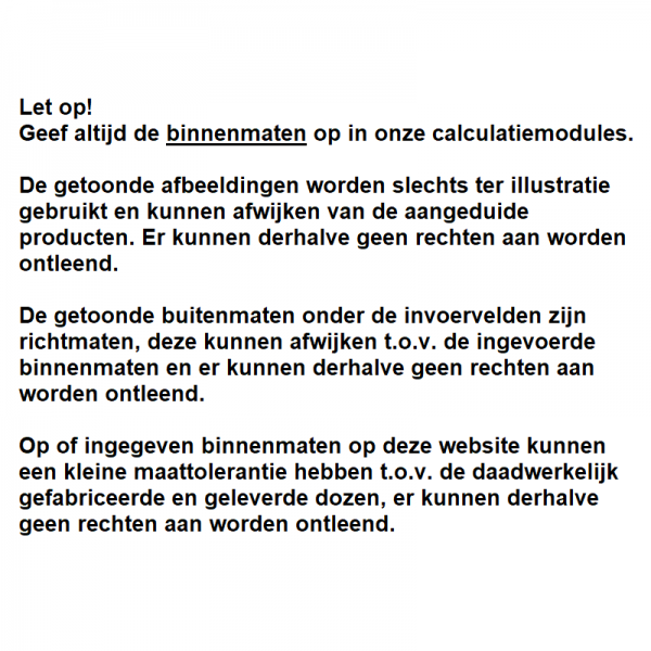 Geef altijd de binnenmaten in millimeters op in onze calculatiemodules.