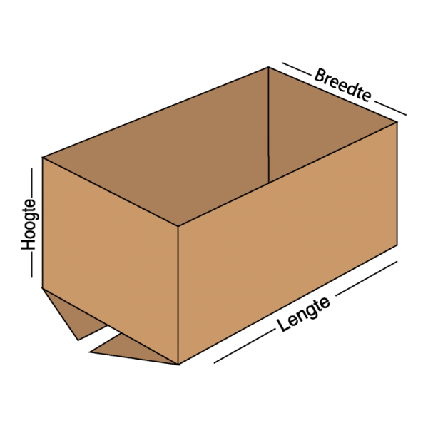 In het invulvak HOOGTE vul je de grootste hoogte (binnen)maat van jouw gewenste magazijndoos in. Dit is de hoogte maat van de achterzijde.