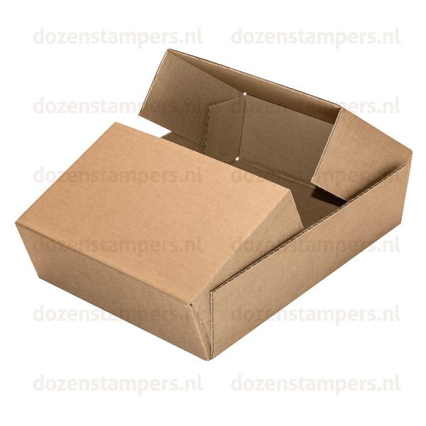 De Dozenstampers.nl levert jouw kartonnen dekseldozen op maat in een goede standaard kartonsoort met aan de buitenzijde een kraftliner.
